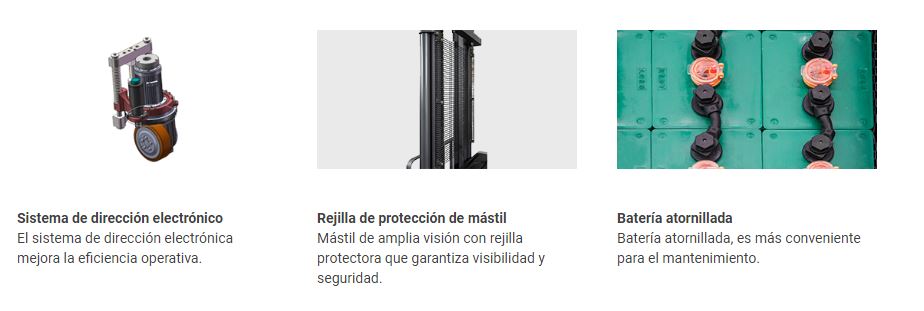 - La alta calidad de construcción y el alto contenido tecnológico hacen de estas apiladoras un punto de referencia real en el sector, y garantizan la máxima eficiencia y la reducción de costes de mantenimiento.